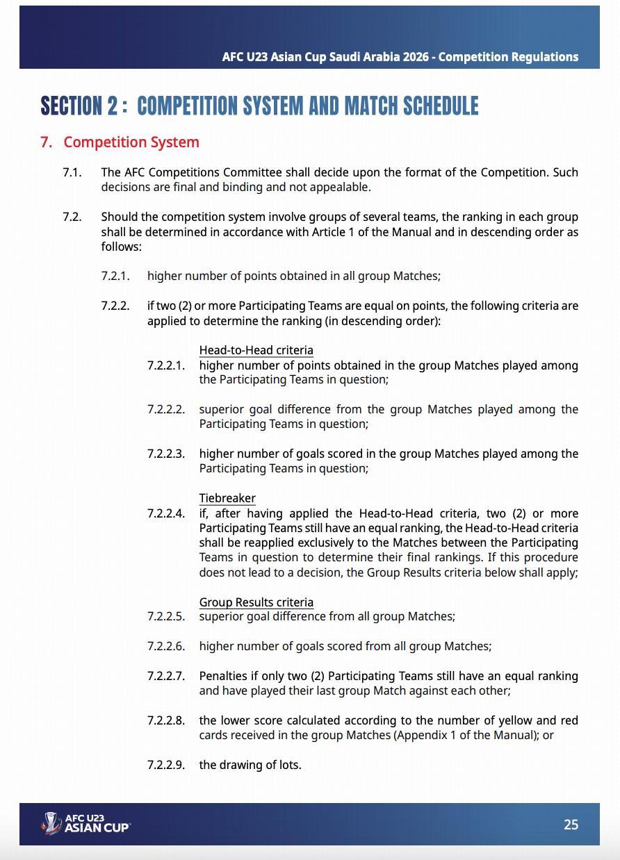 更为复杂的情况是三队同分,即澳大利亚与伊拉克战平,中国负泰国,则澳大利亚、中国、泰国同为1胜1平1负积4分,U23亚洲杯的规则是同分情况下先比较胜负关系。